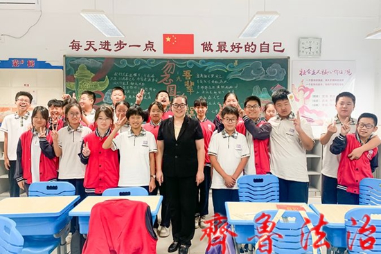 齐鲁法治(东营讯)李春军 为进一步增强青少年的法治观念、坚定法治信仰,营造和谐友善的校园氛围,近日,东营市东营区法院工会副主席高敦、两名律师法治教育讲师以及未成年人审判社会工作站讲师团的讲师们走进胜利五中,为七年级两个班的同学们送上了一堂生动的“预防校园欺凌课”。