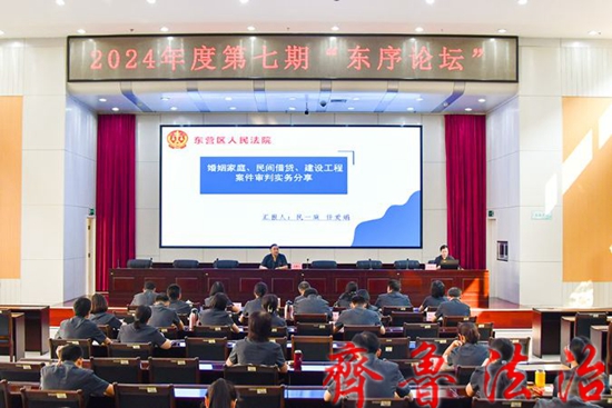 齐鲁法治(东营讯)李春军 近日,东营市东营区法院召开第七期东序论坛,民一庭庭长一级法官任爱娟以《婚姻家庭、民间借贷、建设工程案件审判实务分享》为题,民二庭庭长一级法官尹庆雷以《新公司法审判实务要点——以与公司有关民事纠纷案由为视角》为题,为全体员额法官及法官助理进行了授课。
