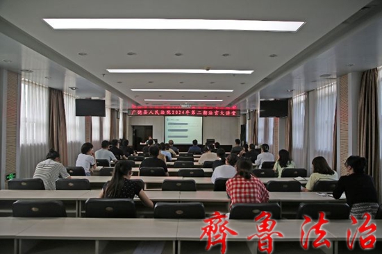 8月9日下午,东营广饶法院2024年第二期(总第八期)“法官大讲堂”开讲,院领导及部分庭室团队干警参加培训,党组副书记、副院长李玉山主持培训活动。