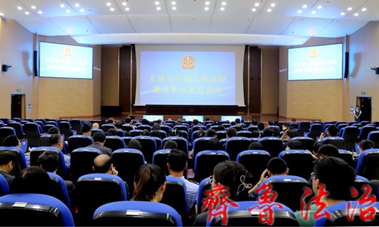 7月19日下午,东营中院组织干警观看廉政警示教育片,《坚持受贿行贿一起查》警醒广大党员干部增强政治定力,保持对“围猎”的警觉,自觉抵制腐败