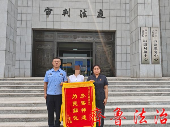 齐鲁法治(东营讯)李春军 近日,东营市河口法院执行局高效执结一起申请执行抚养费纠纷案件,申请执行人对执行干警尽职尽责的工作十分认可,特地来到法院将一面写着“办案神速 为民解忧”的锦旗送到执行干警手中以示感谢。