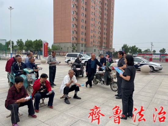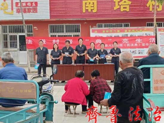 齐鲁法治(东营讯)李春军 为进一步提高群众的法律意识和法治观念,切实让民法典走到群众身边、走进群众心里,成为群众生活中的“法律指南”,在我国第四个民法典宣传月之际,东营广饶法院走进稻庄镇南塔村,开展了以“法进村居,典亮生活”为主题的普法宣传活动。