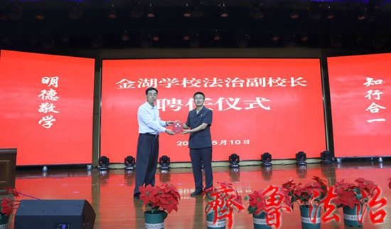 齐鲁法治(东营讯)李春军 为充分发挥法治副校长防护引导作用,进一步提升未成年人法治意识、法治观念和自我保护能力,5月10日,东营中院民四庭党支部全体党员前往东营市金湖学校,实地开展支部联建、党员结对、法治副校长聘任暨送法进校园活动。