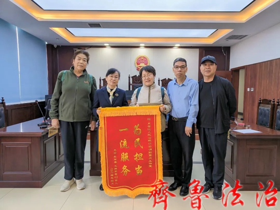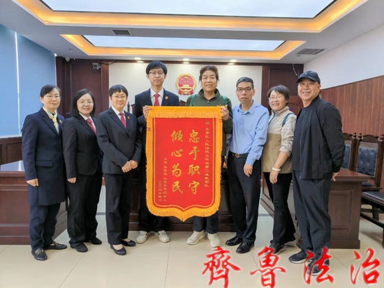 齐鲁法治(东营讯)李春军 近日,东营市东营区法院立案庭第二速裁审判团队收到王某、贺某等40余人赠送的“忠于职守,倾心为民”的锦旗,其表示“万分感谢你们加班加点地为我们解决问题,维护了我们的合法权益”,对第二速裁团队全体人员及调解员的工作高度赞扬。