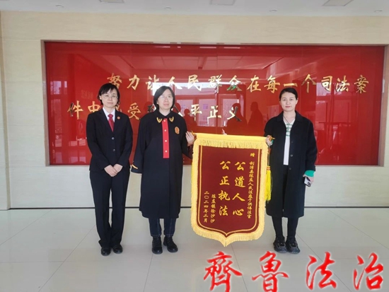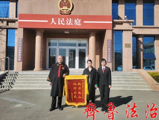 3月4日,一案件当事人将两面书有“执法如山诚信为民”“公道人心公正执法”的锦旗送到了东营利津法院陈庄法庭法官陈志民和于洪伟手中。