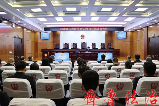 齐鲁法治(东营讯)李春军 为全面总结2023年度工作,更好谋划新年工作,部署当前重点工作,1月10日下午,东营利津法院召开2023年度述职述廉大会。党组副书记盖盛永主持会议,党组书记、院长孙学军出席会议并讲话,其他班子成员和全体正式干警参加会议。