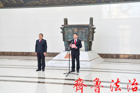 齐鲁法治(东营讯)李春军 1月10日,在第四个“中国人民警察节”来临之际,为进一步激发司法警察队伍凝聚力和职业尊荣感,东营市东营区人民法院法警大队组织开展宣誓活动,热烈庆祝独属于人民警察的盛大节日。本次活动由党组成员、执行局长纪鹏辉主持,党组书记、院长丁文强致辞。
