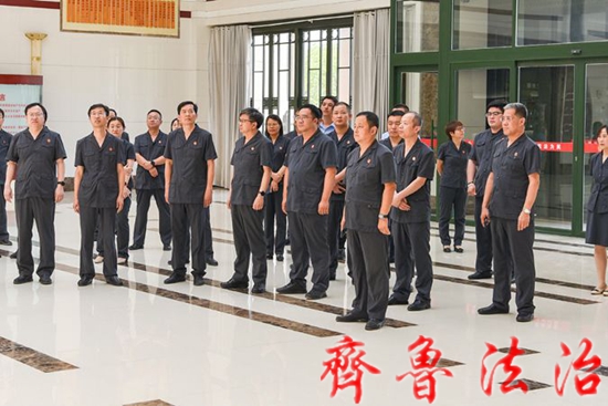 近日,东营市法院执行重点工作推进会暨执行质效提升现场会在东营区人民法院召开。东营市中级人民法院党组副书记、副院长赵有明,党组成员、副院长、执行局长解旭明,执三庭庭长董庆忠,执二庭庭长杨敬栓,东营区人民法院党组书记、院长丁文强