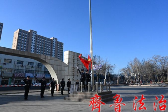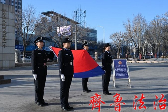 齐鲁法治(东营讯)李春军 为弘扬新时期人民警察职业精神,提升职业荣誉感、使命感、自豪感,东营垦利法院法警大队开展了升国旗、重温入警誓词等系列活动,庆祝第四个警察节的到来。