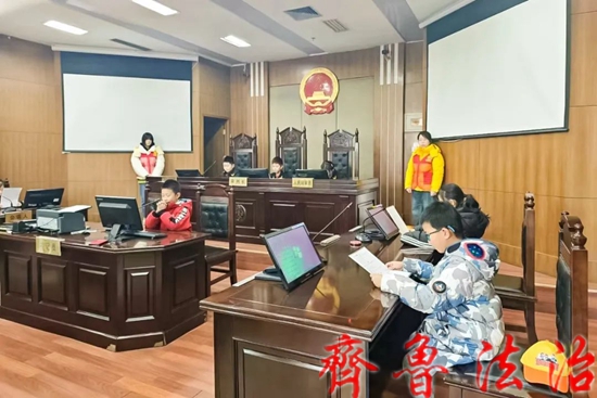 在法治教育讲师的指导下,小记者们以审理一起未成年人盗窃案件为背景,分别扮演刚刚学到的审判长、书记员等角色,稍显生涩却无比庄重地还原法庭调查、法庭辩论、法庭宣判等审理过程,切身体会审判的庄严和对法律的敬畏。