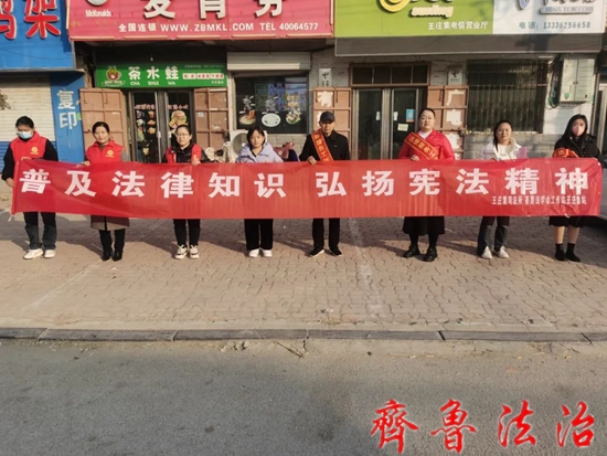 齐鲁法治(聊城讯)于清林 为了弘扬宪法精神,树立宪法权威,聊城莘县司法局王庄集司法所以“大力弘扬宪法精神,建设社会主义法治文化”为主题,开展“宪法宣传周”法治宣传教育活动,组织法律顾问、普法宣传员等工作人员深入到机关、村庄、集市、企业、学校等地进行普法宣传。
