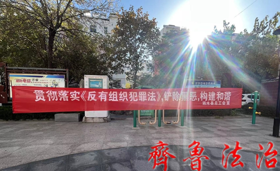 齐鲁法治(济宁讯)于清林 为进一步提高职工群众对《反有组织犯罪法》的知晓度,充分调动职工群众参与扫黑除恶的积极性、主动性,11月27日,济宁泗水县总工会开展了《反有组织犯罪法》普法宣传活动。