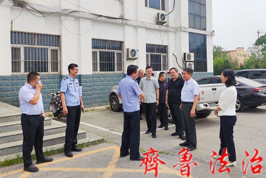 齐鲁法治(东营)李广森 为落实最高人民法院《关于深化人民法院一站式多元解纷机制建设推动矛盾纠纷源头化解的实施意见》、《“枫桥式人民法庭”工作实施方案》等文件要求,在乡村振兴片区建立人民法庭、派出所、司法所“一庭两所”联合调处工作机制。近日,东营区法院党组书记、院长丁文强,党组成员、审判委员会专职委员王磊一行到牛庄镇参加区委依法治区办组织开展“构建乡村振兴片区基层治理新格局”项目实地考察活动。东营区司法局局长刘红蕾、牛庄镇党委副书记、镇长宋轲、东营区公安分局副局长孙振平、牛庄派出所所长纪卫锋、牛庄司法所所长辛磊等参加本次活动。