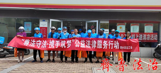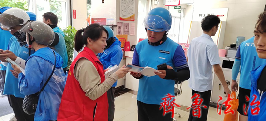 近日,济宁泗水县总工会在齐丰银行工会户外劳动者站点开展了“尊法守法·携手筑梦”公益法律服务宣传活动。