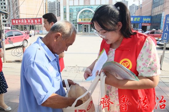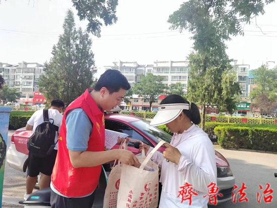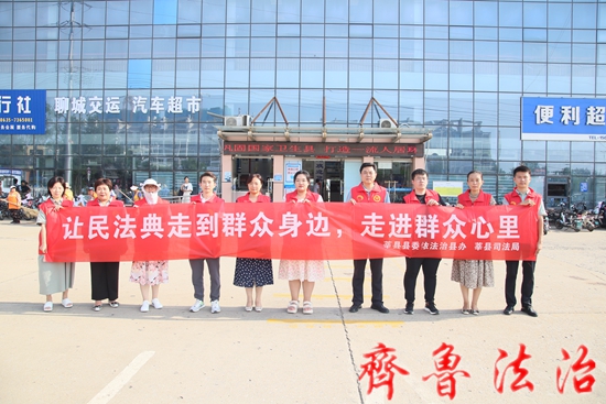 齐鲁法治(聊城讯)于清林 与民同行,法入民心,“典”亮美好生活。为进一步普及民法典知识,传播好法治莘县声音,8月7日,聊城莘县司法局组织普法志愿者在莘县汽车站,集中开展了“让民法典走到群众身边 走进群众心里”普法宣传活动。