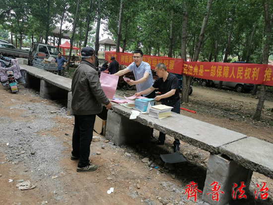 2023年5月18日,临沂沂水县司法局院东头司法所联合自然资源与规划所组成普法宣传队,到院东头镇驻地集贸市场开展“普法进集市 法治摆地摊”民法典专题宣传活动。