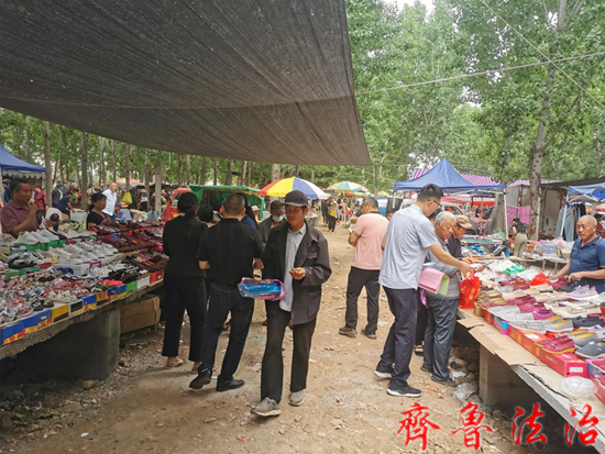 宣传队干部走进集市在空闲摊位进行“法治摆地摊”,并向群众人流量大处向过往群众发放《民法典》宣传彩页、沂水县司法局法律援助手册、《反有组织犯罪法》等宣传材料,同时用通俗易懂的语言为群众讲解《民法典》的基本知识。