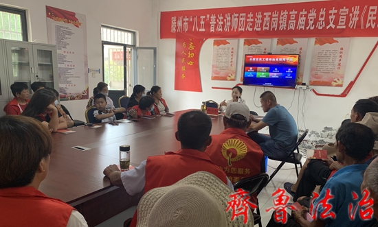 齐鲁法治(枣庄讯)于清林 为深入贯彻落实“八五”普法要求,切实提高基层干部群众尊法、学法、守法、用法意识,6月29日下午,枣庄滕州市西岗司法所邀请山东建硕律师事务所主任孙小平律师为西岗镇高庙党总支的干部群众送上了一堂精彩生动的《民法典》法治课,得到了现场干部群众的一致好评。