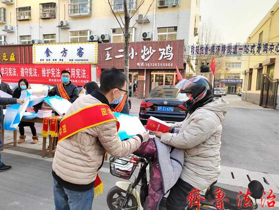 齐鲁法治(聊城讯)于清林 今年是第九个国家宪法日,也是中国现行宪法公布施行四十周年,为使全社会形成尊崇宪法、学习宪法、遵守宪法、维护宪法、运用宪法的良好风尚。聊城阳谷县司法局博济桥司法所联合街道综治办、法律顾问、人民专职调解员开展12.4国家宪法日法治宣传活动 。