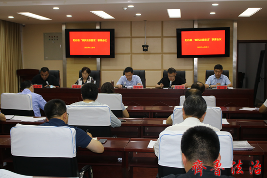齐鲁法治(聊城讯)李春军 6月30日,聊城阳谷县“谁执法谁普法”联席会议在公安局三楼会议室召开,副县长、公安局局长王金楼出席会议并做重要讲话,县司法局党组成员、副局长赵东峰对推进法治建设第一责任人职责、落实“谁执法谁普法”普法责任制、推进“法治乡村+智慧普法”建设等工作进行具体安排,阳谷县“谁执法谁普法”责任单位分管普法领导参加会议。