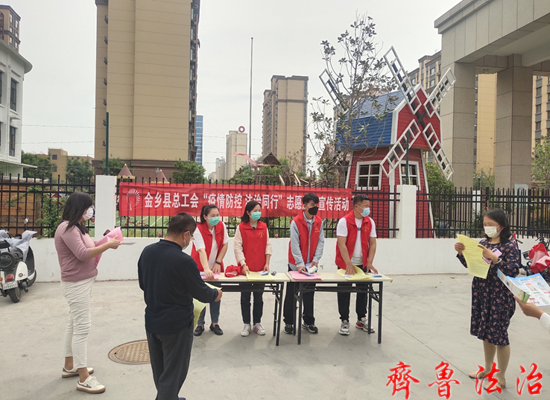 齐鲁法治(济宁讯)于清林 为进一步普及疫情防控相关法律法规知识,有效提升社区居民疫情防控法治意识,助力织密全县疫情防控“防护网”,近日,济宁金乡县总工会组织普法工作者、党员干部走进未来城三期,集中开展了“疫情防控 法治同行”志愿服务宣传活动。