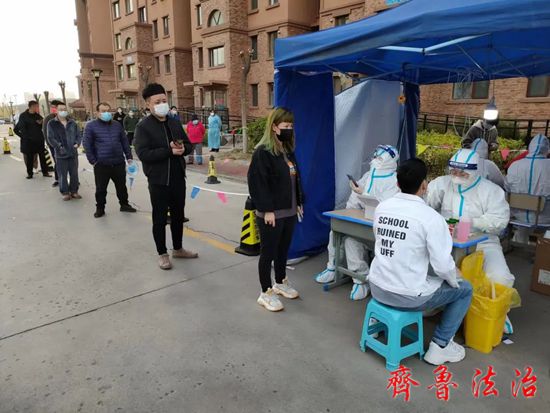 在辖区四个核酸检测点位,社区工作人员、机关干部、党员志愿者、居民志愿者、物业保安等各司其职,有的拿着小喇叭提醒居民戴好口罩、保持1米间距排队;有的忙着为候检者测量体温;有的为群众登记身份信息、查验健康码,现场井然有序。