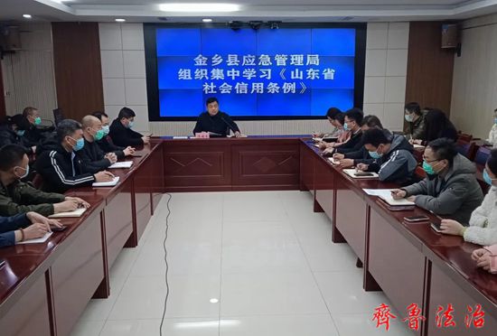 齐鲁法治(济宁讯)牟永胜 为加强安全生产领域信用建设、助力企业加强信用建设,3月29日上午,济宁金乡县应急管理局组织全体人员集中学习《山东省社会信用条例》。