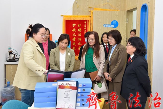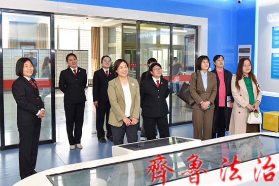 李永芳主席一行首先参观了东营区法院家庭教育指导一体化工作站、未成年人审判社会工作站和法治教育基地,观看了“朝阳花开”少年审判品牌专题片,现场了解了法院工作。