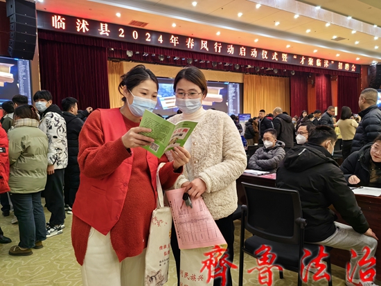 齐鲁法治(临沂讯)于清林 近日,临沂临沭县司法局充分利用临沭县2024年春风行动启动仪式暨“才聚临沭”招聘会的契机,积极开展普法宣传活动,为求职者送上政策宣传解读、法律咨询解答、法律知识普及的法律服务。