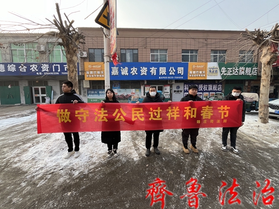 齐鲁法治(聊城讯)于清林 龙腾虎跃辞旧岁,载歌载舞迎新春。新春将至,为满足广大群众法治需求,增强群众法治意识,提升公民法治素养,推进法治乡村建设,2月6日,聊城莘县司法局组织魏庄、十八里铺、大王寨司法所走进各自辖区农村大集、社区、幼儿园等地,广泛开展了“做守法公民 过祥和春节”普法宣传活动,为群众送去新春法治“大餐”。