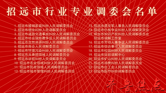 近年来,烟台招远市坚持和发展新时代“枫桥经验”,努力追求枫桥经验新突破,不断加强行专人民调解委员会建设,实现调委会扩面增量,打造出行专调解的“招远样板”。