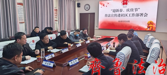 齐鲁法治(聊城讯)于清林 2月6日,在新春佳节来临,外出人员返乡之际,为提高群众知法、守法、用法的水平,营造平安、祥和的节日氛围,聊城临清市司法局联合市委宣传部组织召开“迎新春 庆佳节”普法宣传进社区工作部署会,市住房城乡建设局、四个街道办事处分管负责同志、司法所所长参加。