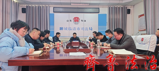 临清市司法局联合市委宣传部组织召开“迎新春 庆佳节”普法宣传进社区工作部署会,市住房城乡建设局、四个街道办事处分管负责同志、司法所所长参加。