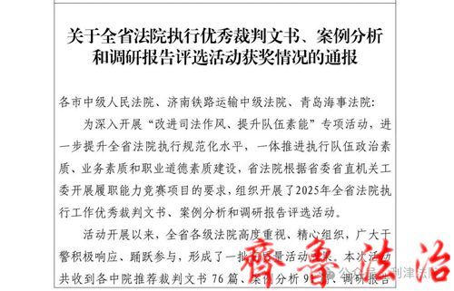 全省法院执行工作优秀裁判文书、案例分析和调研报告评选活动结果出炉,利津法院执行局干警成懿峰的调研报告荣获优秀奖。