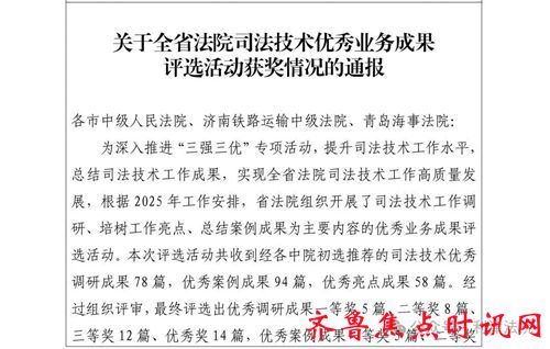 12月8日,山东省高级人民法院发布关于表扬在全省法院人民法庭工作中表现突出集体和个人的通报