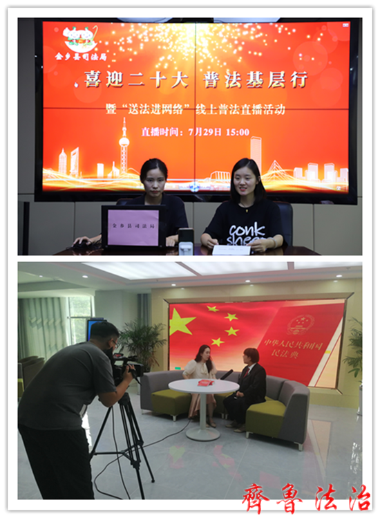 线上普法,“新”“旧”联合。金乡县司法局紧抓线上普法建设,打造出微信公众号、微博、快手短视频等宣传矩阵,更借助直播的力量,以喜闻乐见的形式向群众进行互联网普法。以直播“新”方式送法入人心,联合县广播电视台等单位积极开展直播普法,定期请律师举办“律师典进直播间”,在直播中回答群众法律问题、普及民法典等法律法规,增强互动性、便利性,使群众足不出户便可以找到问题的正确解决方式。以矩阵“旧”方式稳中求进,长期以来开通微信公众号、微博等宣传媒介,持续加强普法宣传效果,通过微信公众号【金日说法】等栏目,每日以案释法向群众推广宣传,经过长期积累,各平台已拥有大量粉丝数、点击量、转载量,形成了金乡县普法中坚力量。